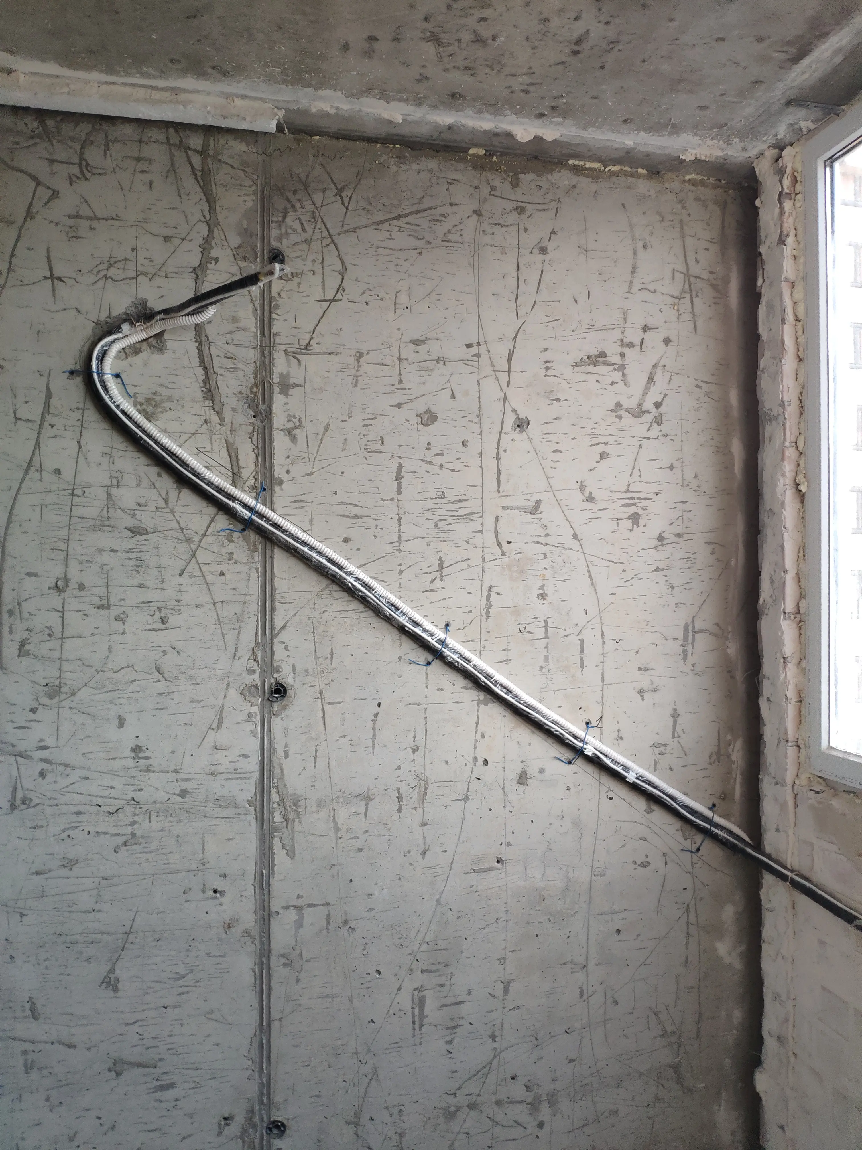 Штробление стен выполняется в зависимости от размещения внутреннего блока и его технических характеристик. При непосредственной прокладки трассы для сплит-систем, необходимо предусмотреть запас магистрали в обе стороны на 30-40 см.